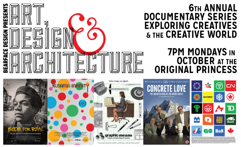 Bearface Design presents Art, Design & Architecture - a documentary series exploring creatives and the creative world. Every Monday in October at 7pm at The Princess Cinemas. This Monday, Oct. 16 is "Graphic Means" co-presented with Studio Locale.