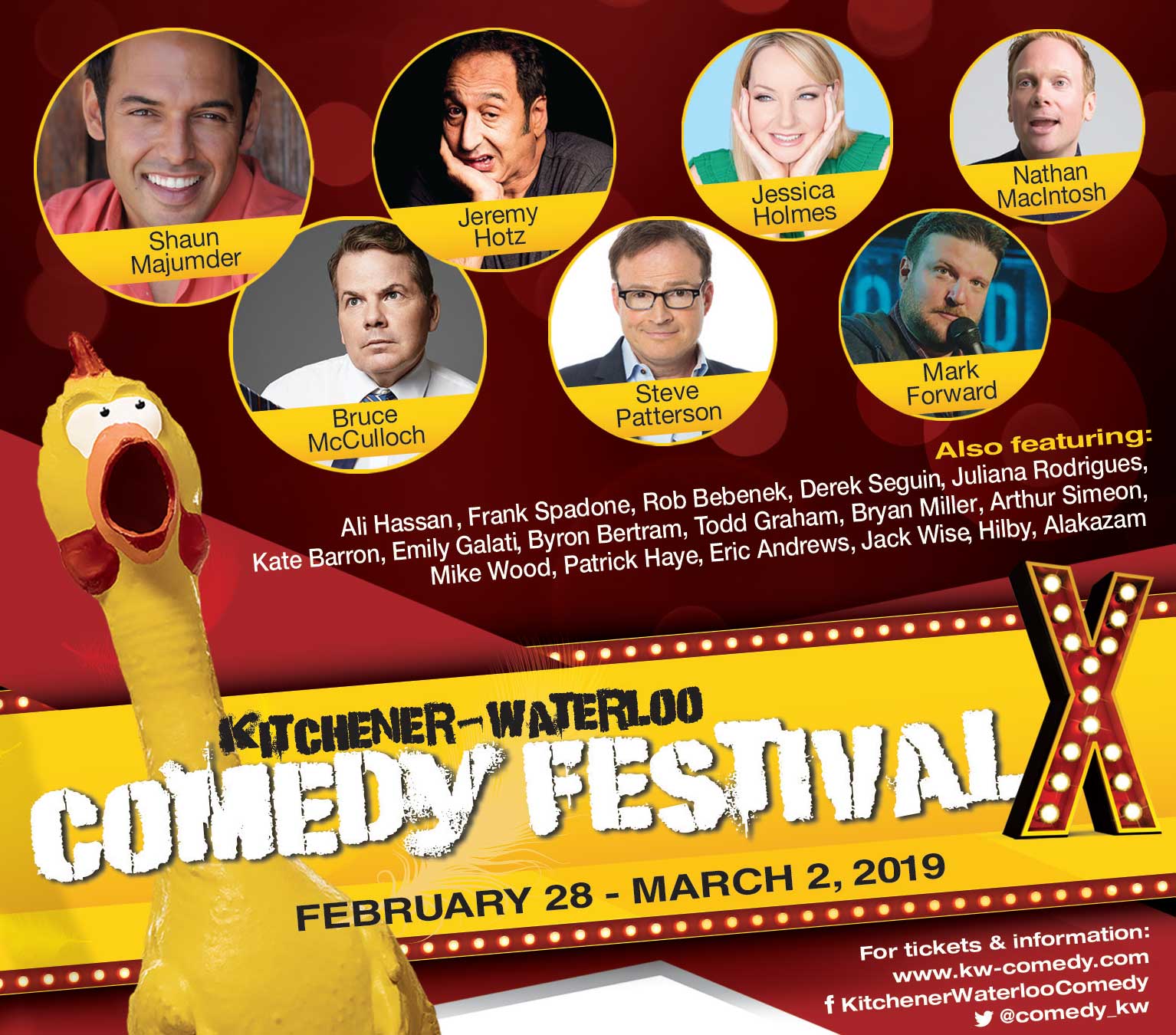 The Kitchener-Waterloo Comedy Festival is coming to town from February 28 to March 2. It's three nights of great comedy at Centre in the Square, The Apollo Cinema, Starlight Social, the Tannery Event Centre, Patent Social and the Jazz Room.