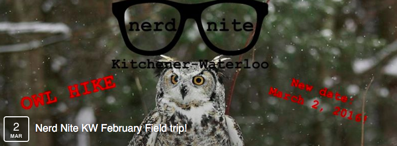Everyone loves owls! This bird has been a nerd icon since the word nerd was invented. Join the Nerd Night KW crew for a presentation followed by a hike (yes, outdoors, in the snow, dress appropriately!).