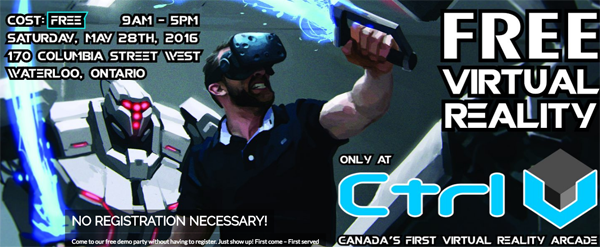 Canada's first Virtual Reality arcade is opening in Waterloo! Don't just play the game, be the game - and you can try it for free this Saturday. This is way better than Dactyl Nightmare. Also, give your self 50 points if you got that reference.