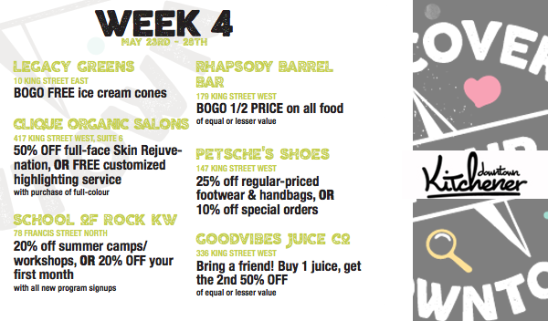 It's week 4 of the Discover Your Downtown events in Kitchener - with one deal just in the nick of time. Your local green grocer Legacy Greens has a buy one, get one deal on ice cream cones. It's the hottest week of the summer so far, so take a walk, grab a cone, and do some shopping.