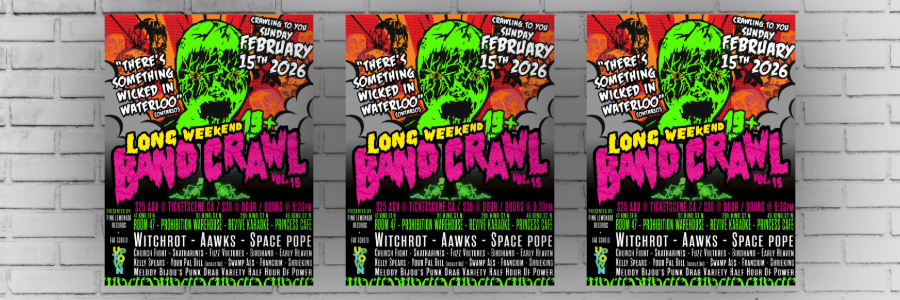 One wristband to rule them all. If your long weekend plans involve more than just sleeping in, the Long Weekend Band Crawl is back for Volume 15 this Sunday. Fat Scheid and Pink Lemonade Records have rounded up 14 punk and alternative acts—including heavy hitters like Witchrot and AAWKS—to take over Uptown Waterloo. One ticket gets you into four venues (The Princess Cafe, Prohibition Warehouse, Revive Karaoke, and Room 47), so you can hop around until you find your vibe. Just a heads-up: entry is guaranteed at Prohibition and Room 47, but the other two are first-come, first-served until they hit capacity. Grab your pass on TicketScene, show your proof of purchase at the door to get your wristband, and prepare for a marathon of DIY noise. 19+. (Poster designed by the awesome bRAT)