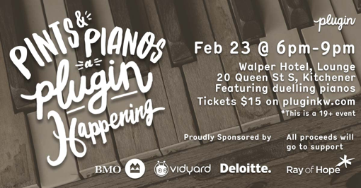 Pints & Pianos is the first Plugin Happening for 2017. They'll be taking over the second floor of the newly renovated Walper Hotel with local brews, #DTK trivia and a full-out duelling piano competition. Get your tickets now for this event happening Thursday, February 23. All proceeds from the event go to support Ray of Hope.