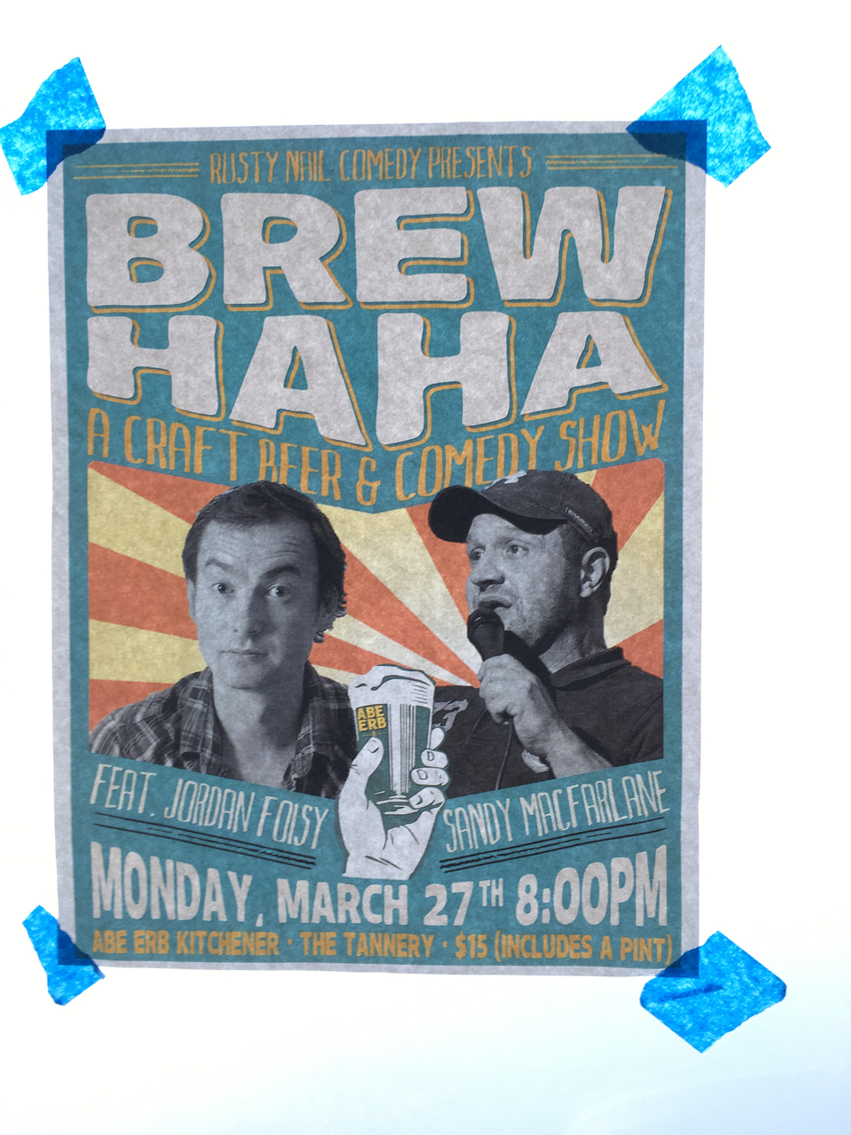 Abe Erb hosts Brew Haha - a craft beer and comedy show - tonight, Monday March 27. Jordan Folsy and Sandy MacFarlane take the stage starting at 8pm. Tickets are $15 and that includes a pint.