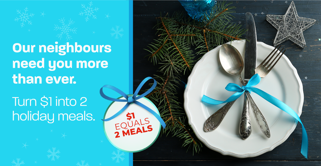 The holidays are approaching quickly, and this should be a happy season—not a hungry one. Unfortunately, a staggering 1 in 8 households in Waterloo region is accessing food assistance. The need is greater than The Food Bank of Waterloo Region has seen in its 40-year history, and our neighbours urgently need your help. Your holiday gift to The Food Bank of Waterloo Region can help provide a hamper filled with fresh and nutritious food. Best of all, every $1 you donate becomes 2 meals!