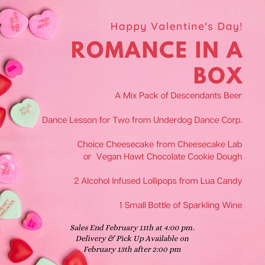 Descendants Beer & Beverage wants to help make your Valentine’s Day in lockdown special. Check out their Romance Box, available for order until February 11.