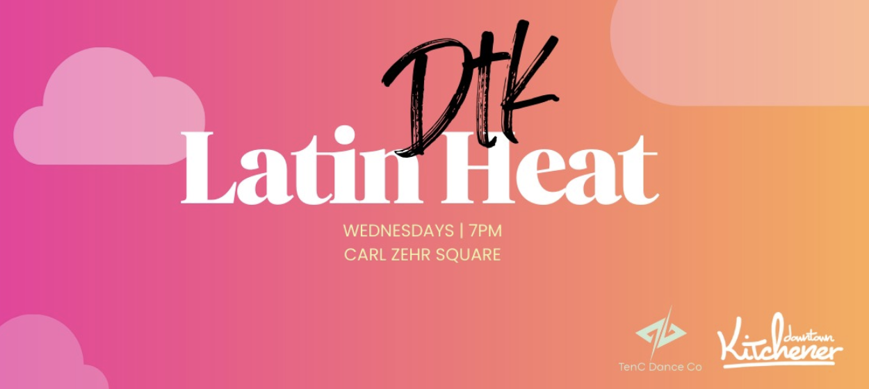 DTK Latin Heat takes over Carl Zehr Square on Wednesday evenings starting at 7 p.m. Free lessons start at 7 p.m. with TenC Dance Co. and the dancing goes till 10.