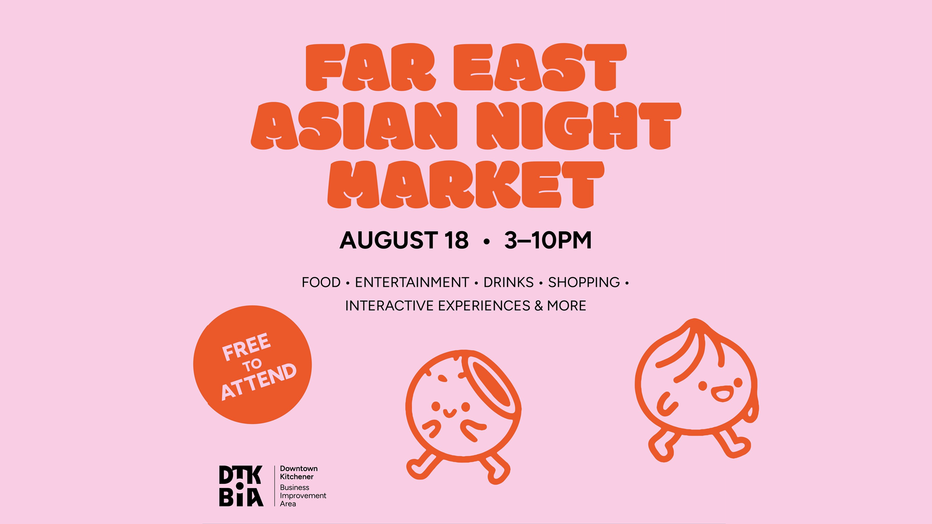 Downtown Kitchener comes alive with the vibrance at the Far East Asian Night Market! From 3-10 pm, immerse yourself in the sights, sounds, and flavours of Asian culture at the Kitchener Market, spread across the Piazza, King Street, and Eby Street. There will be over 45 different vendors and Good Co. Productions has an awesomeml line up of live music for you, too. Brought to you by the Downtown Kitchener BIA.