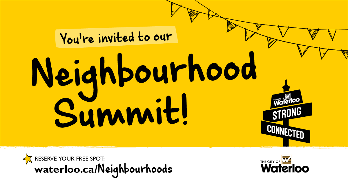 The City of Waterloo is hosting the 4th annual Neighbourhood Summit Series throughout October and November. There is a mix of in-person and virtual sessions for Waterloo neighbours to learn, connect, and have fun! Visit their site to check out the list of available events and to sign up for free.
