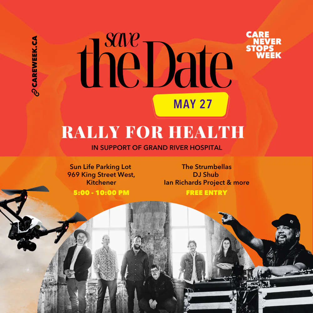 Save the date for Rally For Health on May 27 from 5:00 p.m. - 10:00 p.m. The Grand River Hospital Foundation is rallying every member of our community in support of the launch of their $258 million Care Never Stops Campaign to ensure world class health care right here for everyone who needs it.