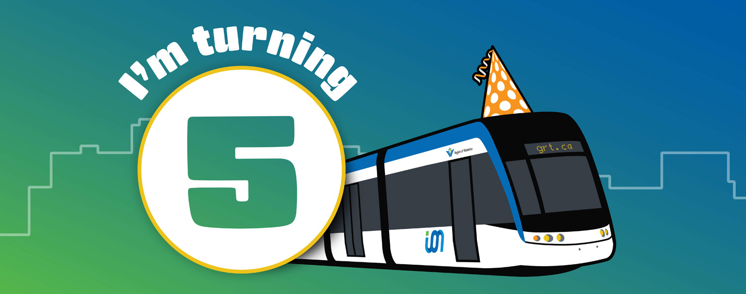 Celebrate five years of ION light rail service at Fairway Station in Kitchener with live music, circus performers, food trucks, face painting and giveaways. There are also community events at Waterloo Public Square, Queen/Frederick Station and Ainslie Terminal.