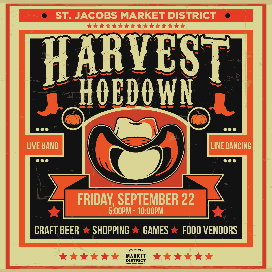 Kick off fall with line dancing, live country music, and craft beer and cider at the St. Jacob Market District Harvest Hoedown. The shops and vendors of the St. Jacobs Farmers Market will be open for this one-night-only licensed event.
