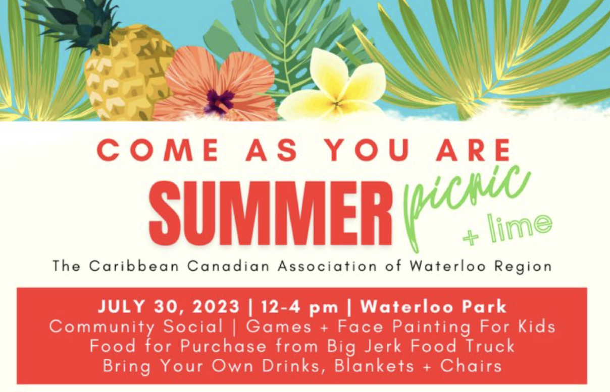 The Caribbean Canadian Association of Waterloo Region invites has its free "Picnic in di Park Summer Social" for the community in Waterloo Park from 12 to 4 p.m.
