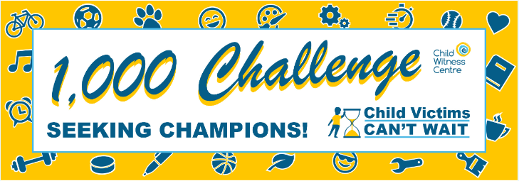The Child Witness Centre is seeking your participation in its 1,000 Challenge – as an individual or with a team – for local child victims! There are also sponsorship opportunities with great benefits! This new peer-to-peer fundraiser is happening NOW, with a celebration taking place at Victoria Park Pavilion on September 17. The 1,000 challenge challenges participants to complete an activity of their choice for 1,000 units (i.e.: hours, kilometres, pages, golf swings, etc.), while raising critical funds to help support more young survivors – by getting them off their waitlist.