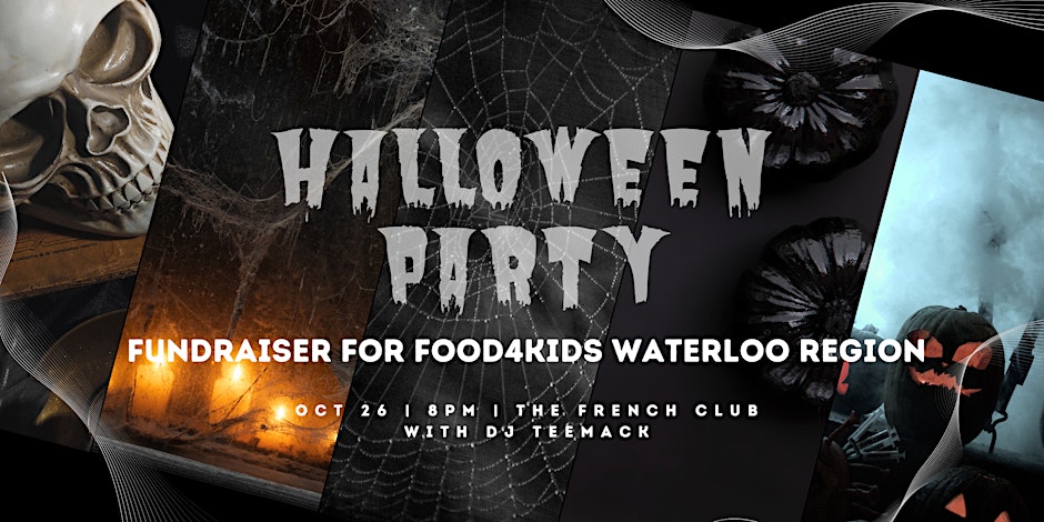 Get ready for a spooktacular evening with Robyn Veber, RE/MAX Twin City Realty Inc. at the French Club to celebrate Halloween while supporting a great cause 5th Annual Halloween Party for Food4Kids. Put on your best costume (not a must, but highly encouraged) and enjoy a night filled with music, dancing, raffle table and more. All proceeds from this event will go towards providing nutritious meals to children in need through Food4Kids Waterloo Region.