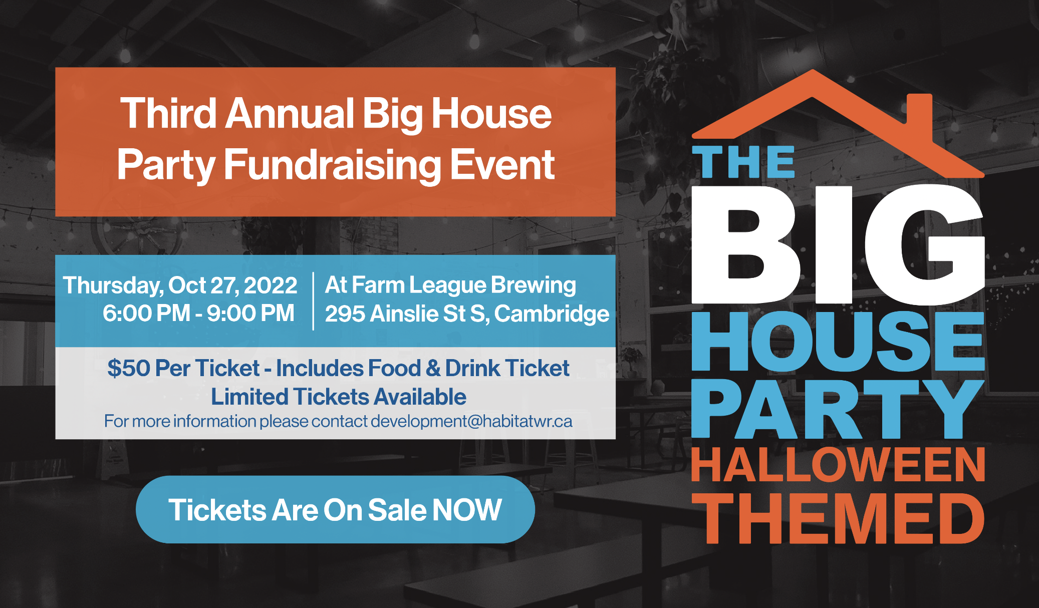 The Big House Party is back in person this year! Join Habitat for Humanity WR on October 27 from 6:00 – 9:00 PM at Farm League Brewing for a fun night of drinks, activities, live music by FireTrain and delicious food provided by Schmuck Truck and The Funnelcloud.